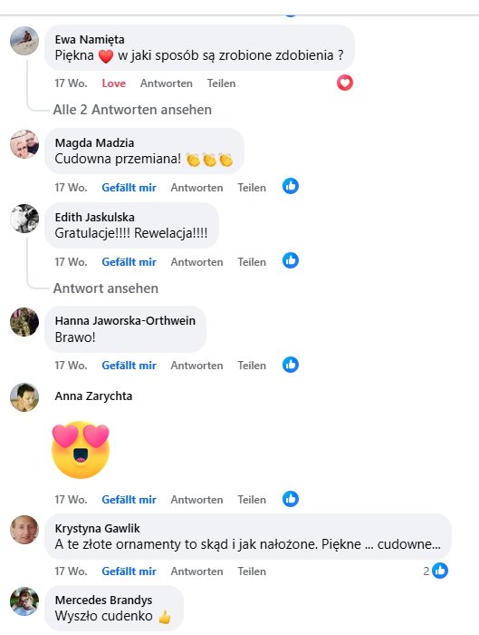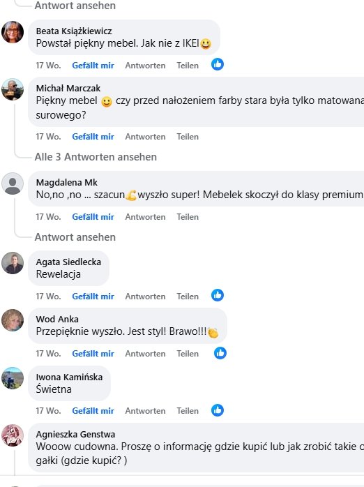 Po publikacji kilku zdjęć w facebookowej grupie „odnawianie mebli inaczej” spotkaliśmy się z bardzo pozytywną reakcją. Zainspirowało nas to do dalszego działania. Postanowiliśmy więc zainwestować w kurs Karoliny Pach, dzięki któremu: